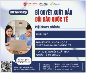 Trong khuôn khổ chuỗi Workshop về Nghiên cứu & Xuất bản quốc tế từ tập đoàn iGroup với mong muốn hỗ trợ tối ưu hóa chất lượng và số lượng các hoạt động nghiên cứu cho nhà nghiên cứu Châu Á Thái Bình Dương, iGroup và Enago lần đầu tiên hợp tác với Trường Đại học Văn Lang tổ chức workshop trực tuyến với tên gọi “Bí quyết xuất bản bài báo quốc tế”.